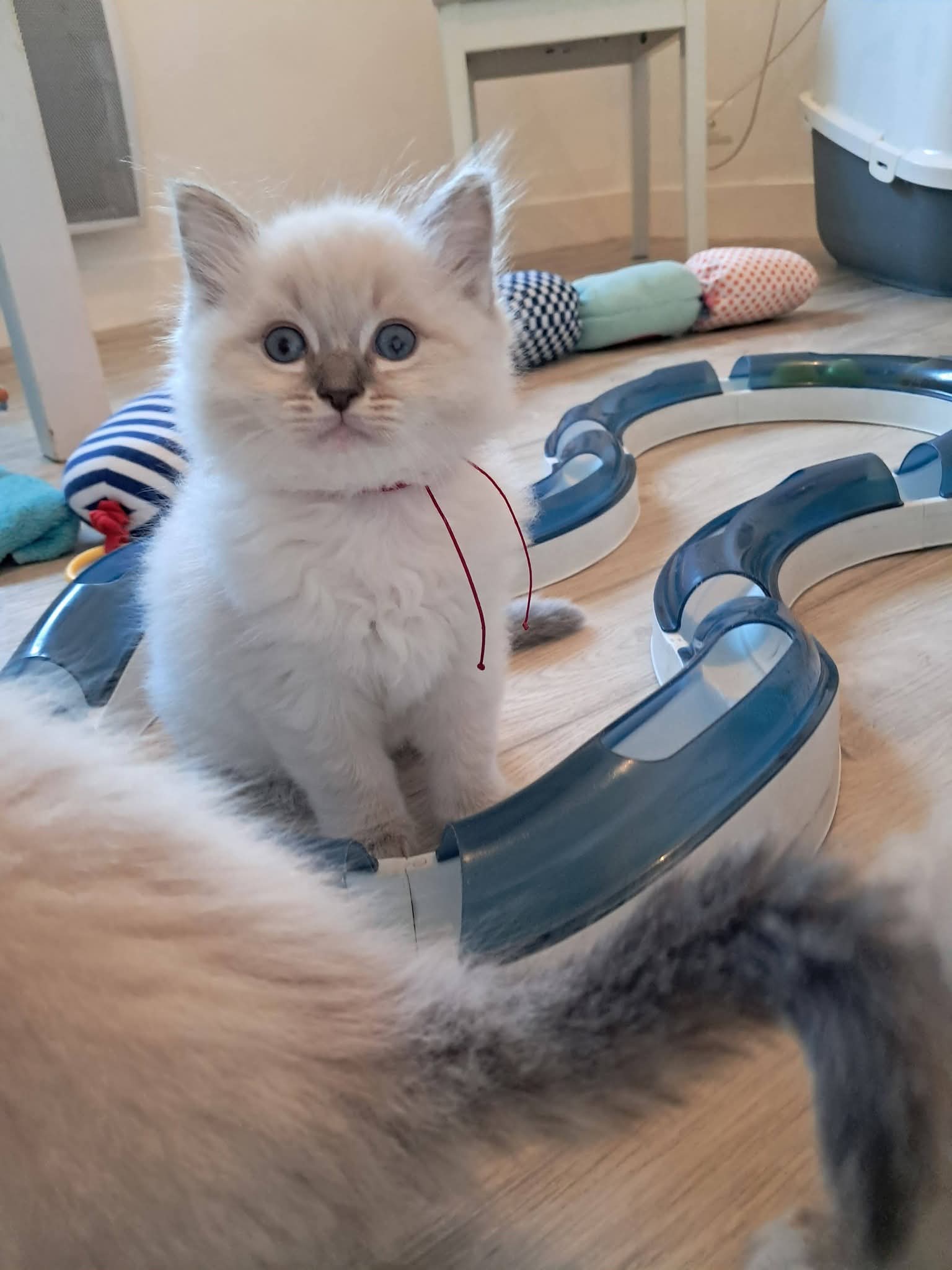 Je suis très câlin 🥰, j'aime beaucoup jouer, encore plus si on joue avec moi et j'aime venir me cacher contre ma maman humaine.